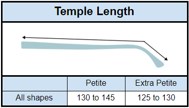 The temples on petite frames are shorter than on average sized frames, allowing for a more secure fit. They are also generally longer than the temples on children’s frames. That’s good because kid’s glasses with too-short temples can cause pain behind the ears.