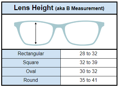 The height of your lens should be proportionate to the length of your face. Frames that are too short on a long face will make it appear overlong. Likewise, too-tall frames on a short face will make it appear swallowed up by the frames.